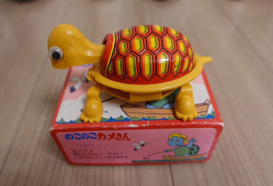 上の写真はゼンマイ仕掛けのカメのおもちゃ、ついつい買ってしまったものですが反省はしていません。